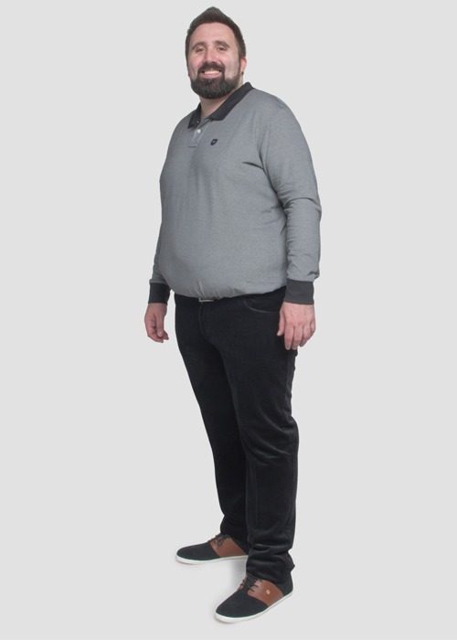 Un homme corpulent se devra majoritairement d’opter pour des coupes adaptées à sa morphologie, tout en s’adaptant à la forme du velours côtelé. En bref, en haut comme en bas, les pièces ne devront pas être trop lâches, sans être moulantes. On pourrait appeler ça une coupe casual, qui devra épouser parfaitement les mouvements du corps sans en faire trop. N’allons pas jusqu’à parler de sur-mesure, mais il est évident que le velours côtelé demande plus d’attention qu’un coton basique !