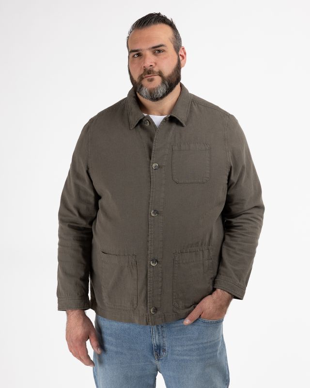 - Veste surchemise en lin grande taille beige.